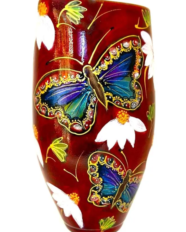 Anita Harris Art Pottery Butterfly & Echinacea Triangle Vase – Medium