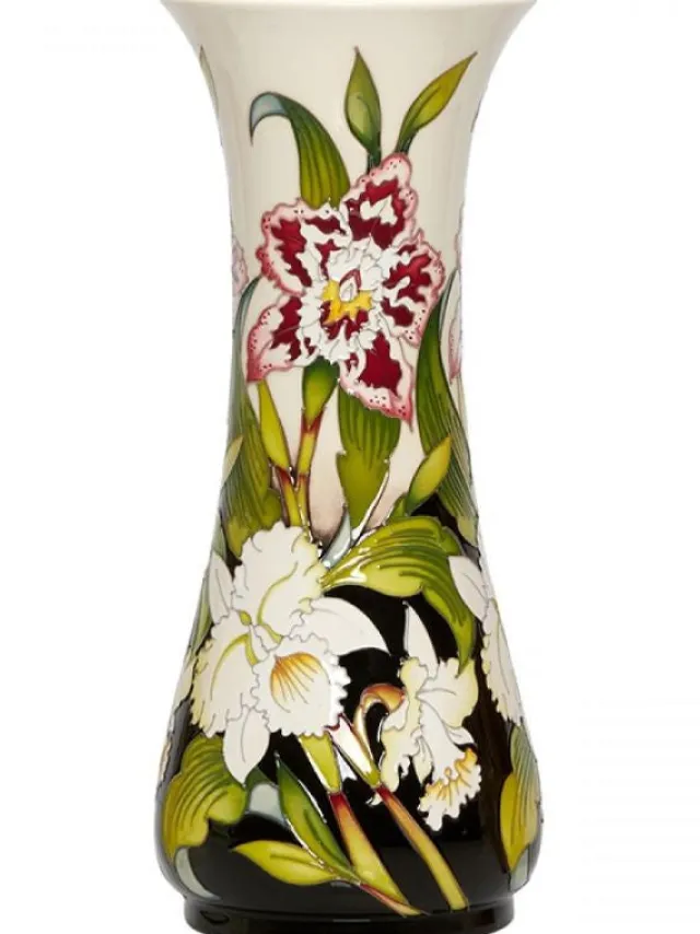 The sheer beauty that this watercolourist’s brush captured during her 56-year career as an illustrator for the RHS Orchid Committee is incalculable, diffusing her talent on generations to come in much the same way as the forefather of Moorcroft pottery, William Moorcroft, born like Nelly in 1872, left a legacy of cultural heritage in the ceramic idiom. Nelly’s illustrations received no global fame outside of the horticultural world and yet are the most exquisite illustrations you are ever likely to observe – it is almost as if the orchids are unfurling before your very eyes to create a piece of heaven. The first and, to date, longest serving RHS orchid artist, Nelly was employed to paint life-sized illustrations of award winning orchids. These built a reference collection of images of cultivars and hybrids for the Society that are held within the RHS Lindley Collections. Nelly left behind over 4,500 studies of orchids, which have been lovingly commemorated by Moorcroft designer, Nicola Slaney, in For The Love of Orchids RHS Collection to mark the 150th Anniversary of her birth in October this year.