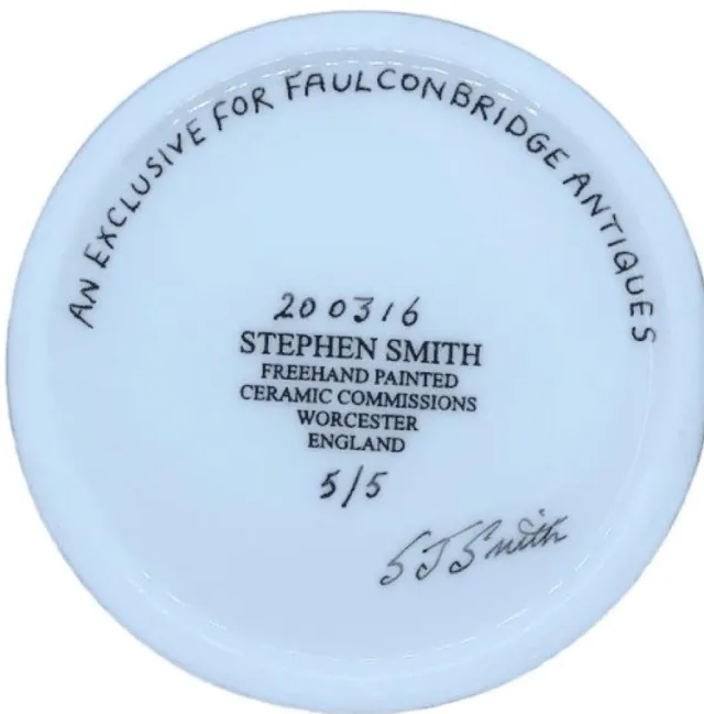 Faulconbridge Antiques commissioned Steve Smith Ceramics to paint these exquisite miniature freehand painted works of art on bone china exclusive to Faulconbridge Antiques.