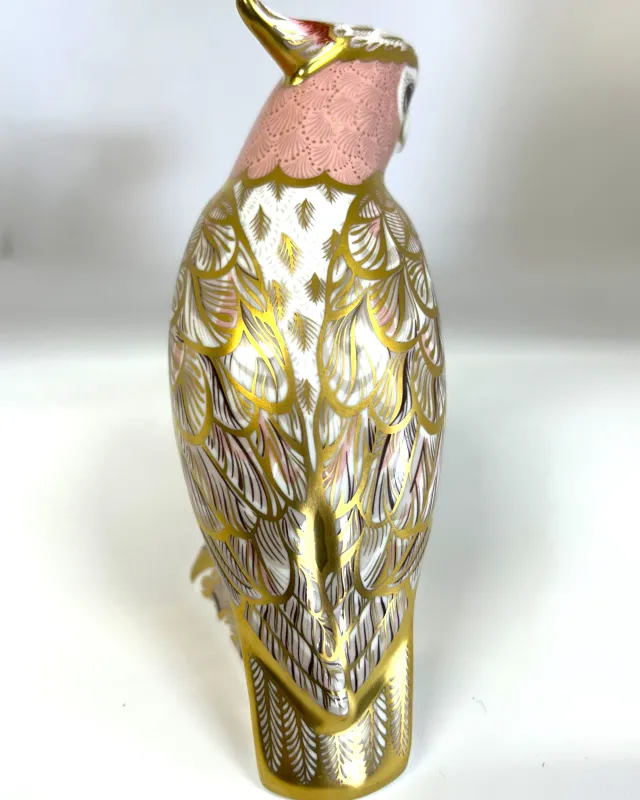 Crown Derby Amazon Pink Cockatoo Paperweight.