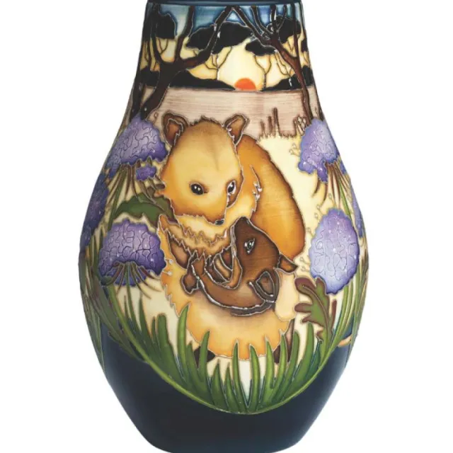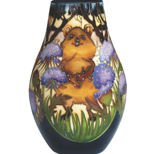 When National Geographic describes an animal as the “happiest on earth,” it is not surprising that designer would wish to bring such joy to a Moorcroft design. Vicky has captured the Quokkas ‘teddy bear face’, complete with brown fur, a round nose, rounded fluffy ears, and of course, its mouth set in a permanent smile, in three differing poses. Originally discovered by Dutch Explorers, who mistook them for large rats, unfairly deeming their native Western Australian island “Rotte nest,” or rat nest, the Quokka is probably Australia’s most charismatic resident.