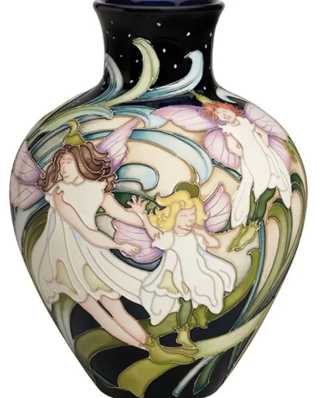 Deep sleeps the Winter, and in this cold, frosty, natural world, all life appears still. Yet it is the call of the tiny snowdrop that shakes the world awake. Emma has championed fairies in Moorcroft before, including the famous Cottingley Fairies, and for her snowdrop fairies, her inspiration are young, fragile maidens with hair as brown as root, as gold as a snowdrop’s ovary and as amber as the shafts of light that peep through a cluster of snowdrops, laughing the world awake.