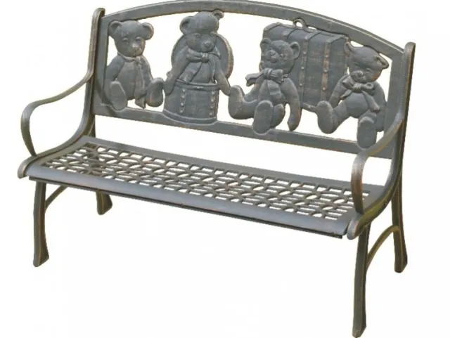 The miniature all metal kids bench is the same solid construction as the full size benches. Tough long wearing powder coat finish with hand painted gold highlights & highly rust resistant.