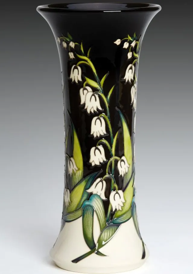 Of all the designs created for the Platinum Jubilee celebration, A Floral Bow is undoubtedly the most personal. As such, it has been moved into the hallowed ground of a significant Moorcroft design. The Lily-of-the-valley is one of the most delicate flowers of all. Nicola Slaney’s bell-shaped blooms, capture Her Majesty’s early years with the single flower gently bending to one side with its bells on a flowering stalk offering a floral bow, to represent the thousands of bows the young Princess Elizabeth would receive as Her Majesty, Queen Elizabeth II over the coming years – bows of respect, affection, loyalty and love.