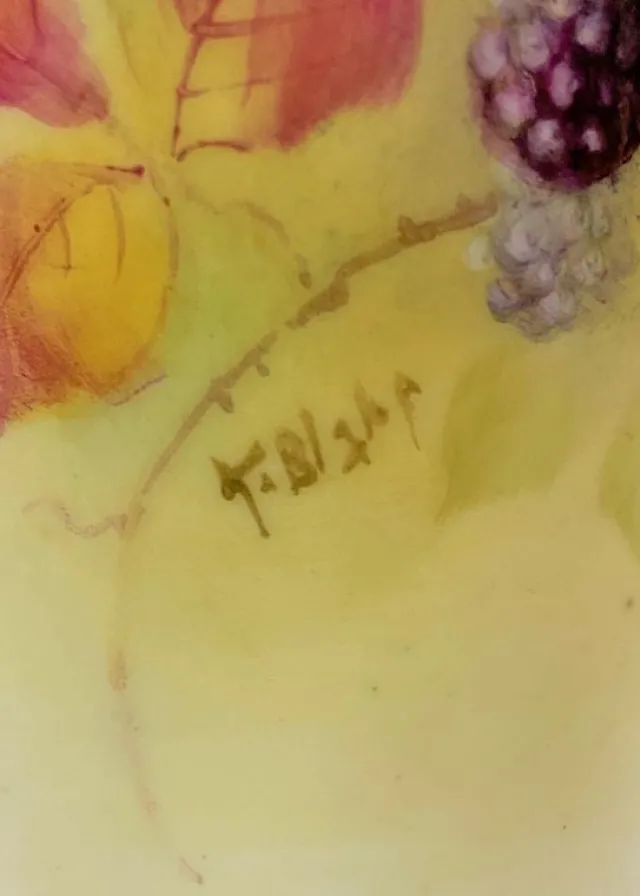 A beautiful cylinder vase with Blackberries & Leaves. Hand painted and signed K. Blake